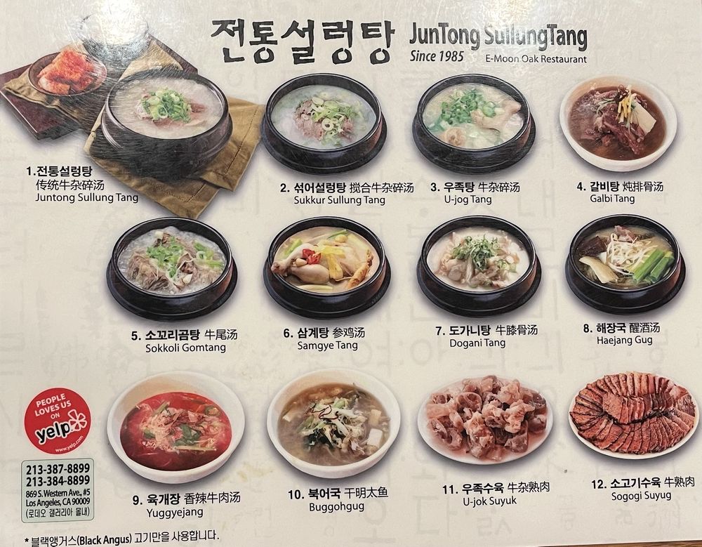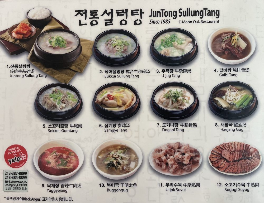 JunTong SulLungTang, a Korean soup restaurant located in Los Angeles, offers a variety of flavorful and satisfying dishes. With amenities like reservations, wheelchair accessibility, and options for both Android and Apple Pay, it caters to a diverse range of customers. The menu boasts limited but delicious vegetarian options and a range of dining occasions from breakfast to dinner. JunTong SulLungTang provides a casual and friendly atmosphere, making it suitable for groups, families, and individuals alike. Their private parking lot, waiter service, and gender-neutral restrooms enhance the overall dining experience. With outdoor seating, Wi-Fi, and happy hour specials, this restaurant goes the extra mile to ensure customer satisfaction. Their alcohol options and dog-friendly policy add to the welcoming ambiance, making it a must-visit spot for authentic Korean cuisine enthusiasts.